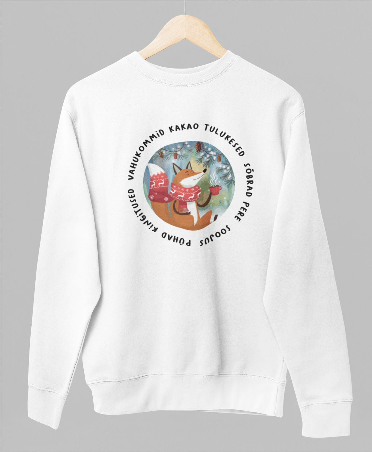 Valge UNISEX pusaer ilma kapuutsita "Jõulusümbolid"