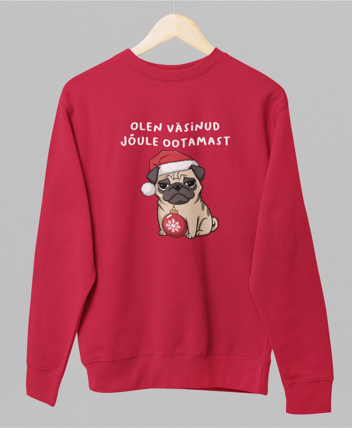 Punane UNISEX pusaer ilma kapuutsita "Olen väsinud jõule ootamast"