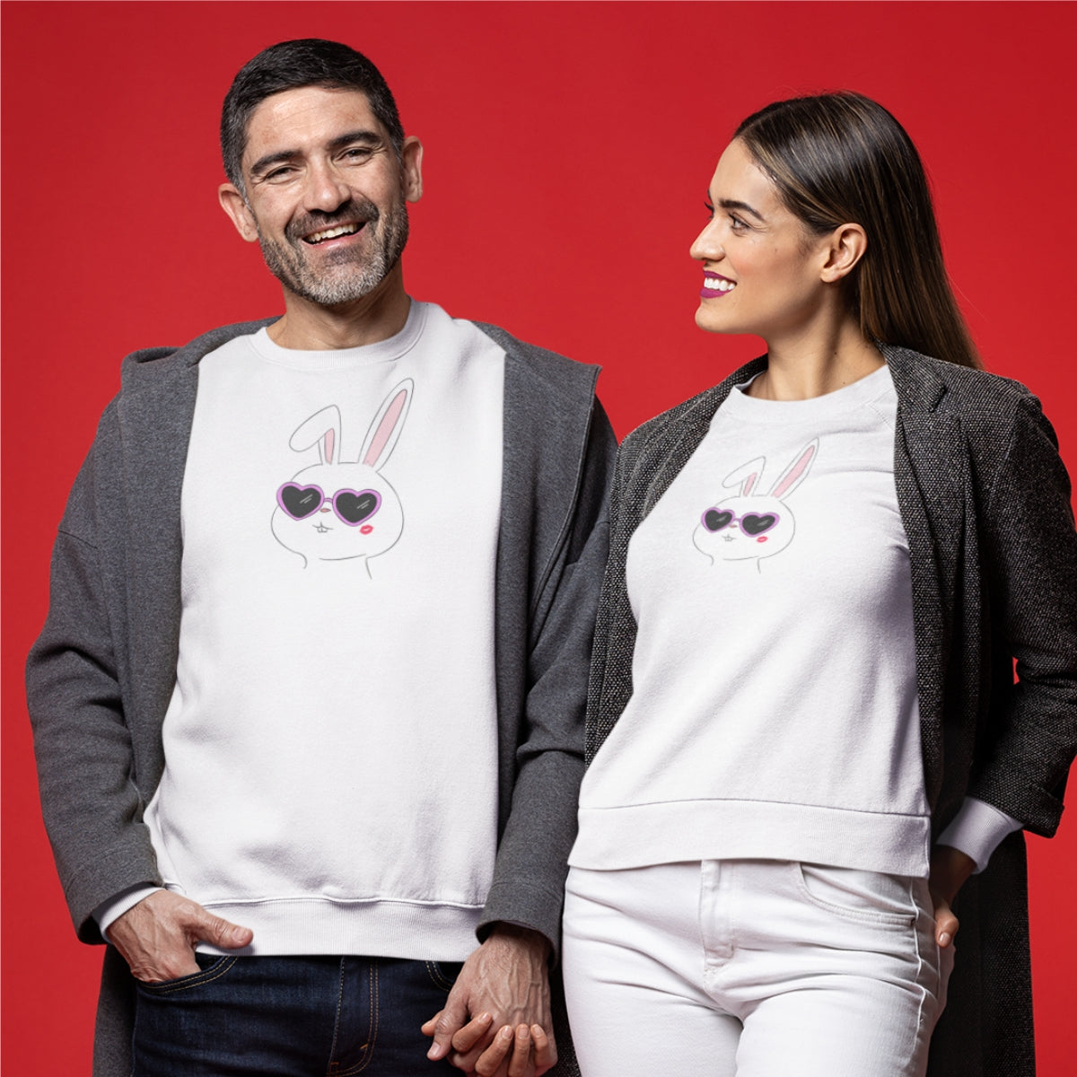 Valged kapuutsita dressipluusid paaridele „Suudeldud“