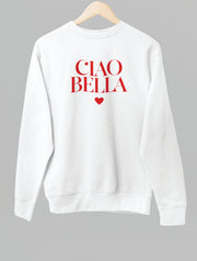 Valge UNISEX dressipluus ilma kapuutsita "CIAO BELLA"